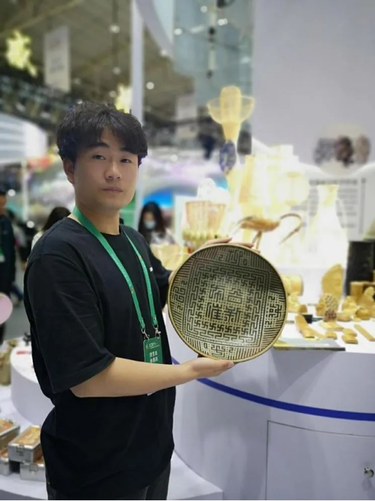 本次博览会上,我院“湖科布谷鸟”团队带来的样式新颖、造型灵动的竹编制品不时吸引观众驻足,其中一个针线簸竟然价值10万元,很多市民示,完全超出想象,真叫人“开眼”。团队负责人、我院2021级视觉传达设计专业学生李林涛介绍,这个最贵的针线簸,精致程度是民间篾匠比拼手艺的“天花板”,不要小看这个针线簸,看似普通,做起来非常复杂、非常困难,不仅涉及到材料和工艺,还要有足够经验和耐心。