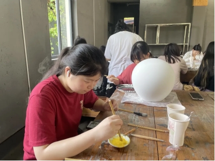 6月12日—13日,太阳集团tcy87222021级美术系师生一行56人,到董继宁美术馆记山窑开展艺术实践课堂——“瓷上绘画”教学活动。