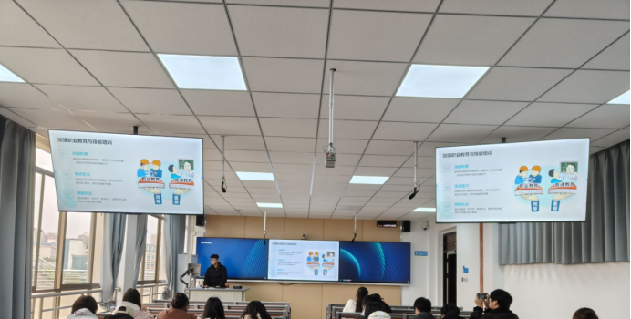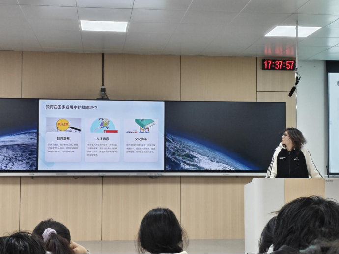 辅导员通过PPT向同学们系统解读了《教育强国纲要》中关于建设高质量教育体系、推进高等教育创新发展、加强职业教育与技能培训、促进教育公平等重点任务的核心内容。为了增强理解,班会还展示了教育发展数据图表和政策文件图片,通过直观的方式让同学们认识到教育强国建设的紧迫性和重要性。这一环节不仅拓宽了同学们的教育视野,更让大家深刻体会到作为艺术设计专业学生在教育强国建设中的独特价值。