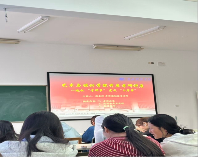 讲座伊始,周老师结合近年考研政策调整动态,系统解读了当前考研整体趋势,让同学们对行业现状有了清晰认知。针对艺术类学生的专业特性与备考痛点,他凭借多年辅导经验,从院校选择、专业方向、地域差异等多个维度,深入剖析了艺术设计类考研的核心备考策略,并对不同地区的考研难度等级进行了细致划分,为同学们提供了精准的择校参考。