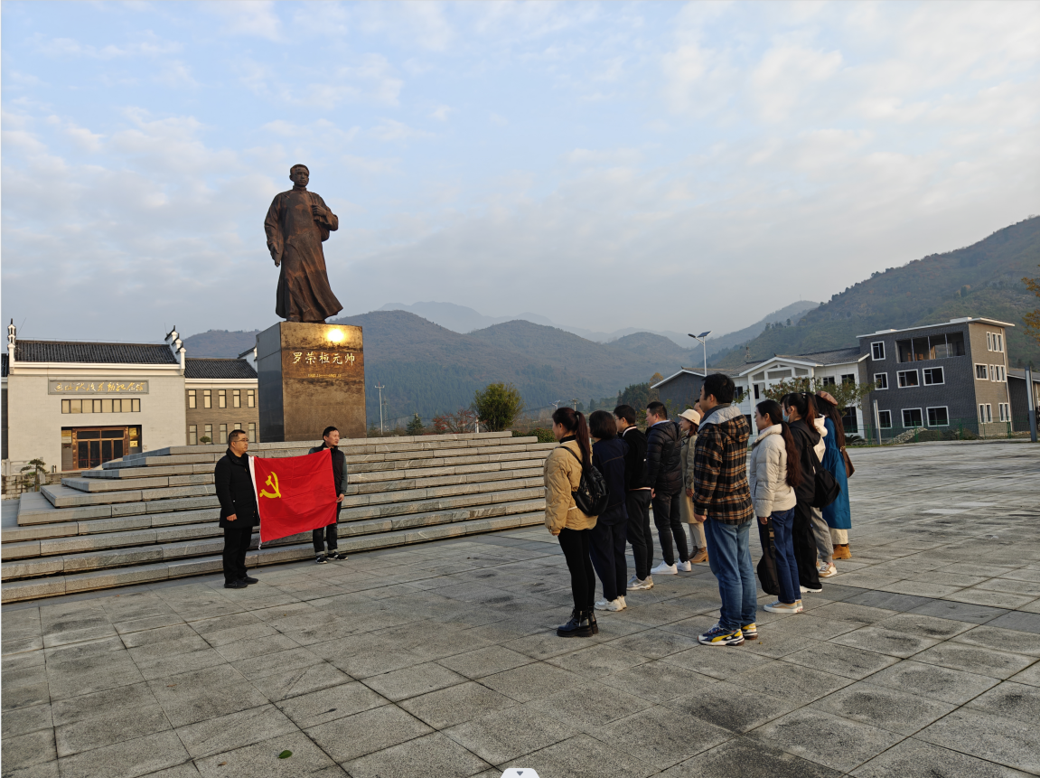 教工支部在罗荣桓元帅广场和秋收暴动起义纪念馆认真阅读了自1925年到解放战争几十年间,通城县的革命斗争历史,充分展现了土地革命时期通城县在湘鄂赣革命根据地的重要作用,体现了通城人民在付出的巨大牺牲下的前赴后继的革命斗争精神。通过重温当时革命烈士的战斗史诗,学习掌握了从1927年7月,罗荣桓元帅受中共湖北省委指派到通城黄袍山发展农民起义运动,组织农民自卫军,到罗荣桓元帅根据“八.七会议”精神,同通城县农民军一道,于8月20日在鄂南通城黄袍发动了通城县农民暴动,夺取了县城,拉开了湘鄂赣边区和鄂南秋收暴动的序幕,成立了通城、崇阳农民革命军总指挥部,建立了我国历史史上第一个县级红色政权--通城劳农政府。活动中,党员教师们在罗荣桓元帅雕像前重温入党誓词。
