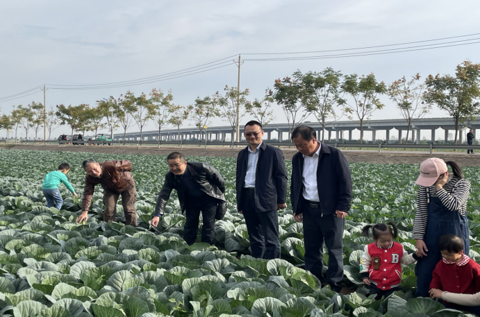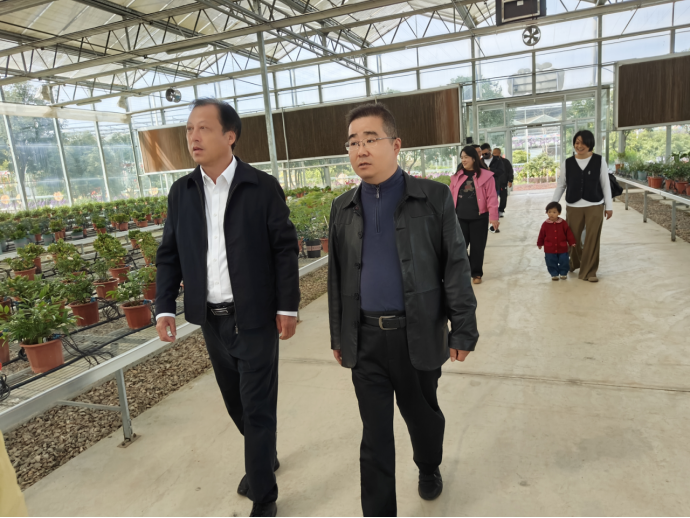 在潘家湾蔬菜长廊,全体党员干部走进田间地头参观学习。近距离感受现代化农业建设情况,聆听村支部书记讲述习近平总书记关于推动乡村振兴等方面重要指示精神。
