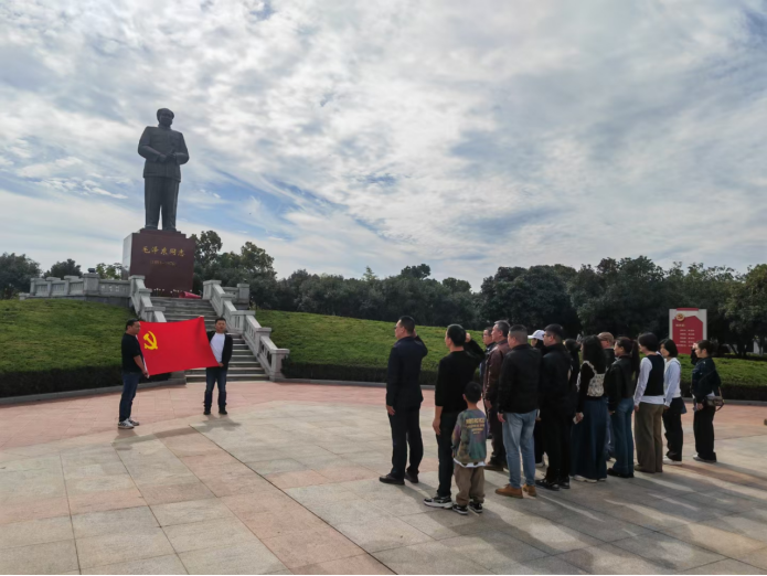 在思源广场毛泽东同志纪念碑前,全体党员面向党旗,右手握拳齐肩举起,铿锵有力地重温入党誓词。在领略乡村文化的独特魅力后,思想上也进行了一次升华。这不仅让大家更加坚定文化自信,党性锤炼上也向前迈了一大步。