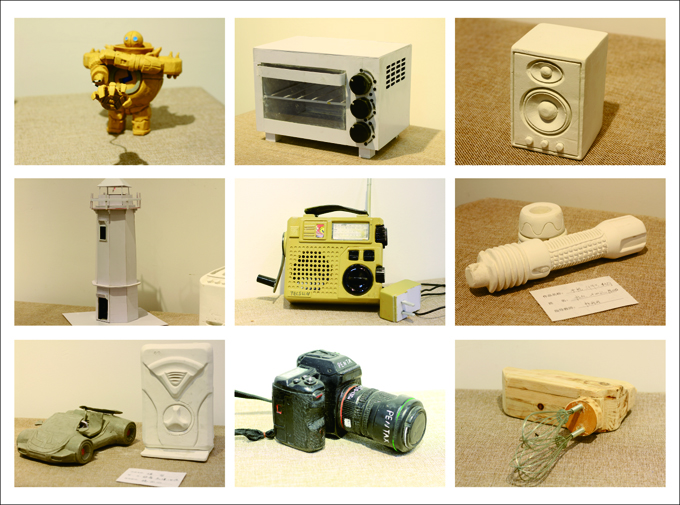 本网讯(齐铁军 供稿)产品设计专业2014级《模型制作与工艺》课程作业在咸安校区教二大厅展出。指导教师分别为:杨丽丽、齐铁军、朱容。