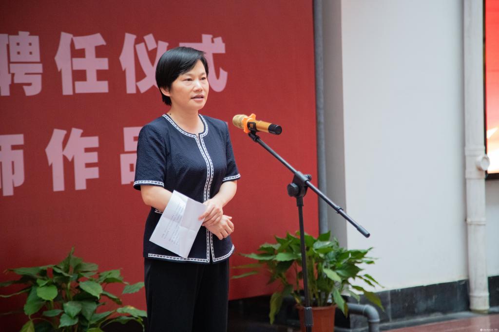 闫英姿向董继宁教授此次受聘表示诚挚的感谢。她指出,董继宁教授加盟湖科,是湖科艺术教育之幸。董继宁教授是从咸宁走出的艺术大家,他的加入将促进学校进一步融入地方、服务区域,进一步提高学科建设水平,扩大艺术学科的社会影响力与专业辐射力,引领我校艺术教育事业攀登高峰、创造辉煌。她强调,董继宁教授加盟湖科,是湖科莘莘学子之幸。董继宁教授是蜚声中外的现当代山水大家,更是德艺双馨的艺术泰斗。广大师生要以董继宁教授为榜样,把握来之不易的机遇,认真聆听教导,虚心讨教求学,努力汲取智慧,学习为人为艺,创作出更多有筋骨、有道德、有温度的优秀作品,为筑牢中华民族精神大厦的根基作出湖科贡献。她说,董继宁教授加盟湖科,更是湖科文化建设之幸。我们要用好董继宁教授的金字招牌,充分发挥董教授的学术影响力,切实作好学科建设发展,引导青年教师成长,培养高水平艺术人才,为推动我市文化事业繁荣发展、提升我校美育教学质量、打造校园文化建设精品贡献新的更大的力量。
