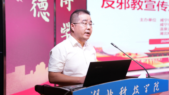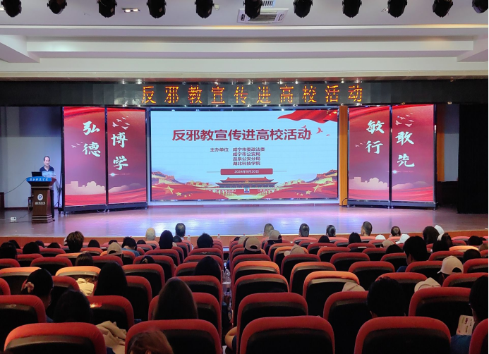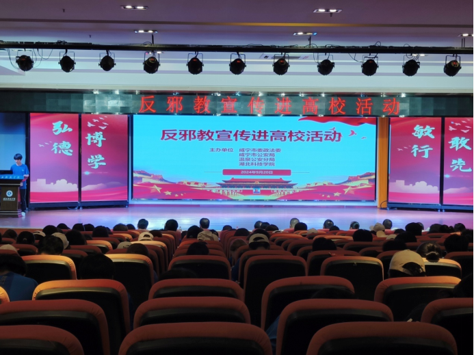 为了进一步深入学习宣传贯彻习近平新时代中国特色社会主义思想,全面贯彻落实党的二十大精神,进一步筑牢我校全体师生反邪教思想防线,提高我校师生对邪教的认识与防范能力,营造积极向上、健康和谐的校环境。2024年9月20日下午,太阳集团tcy8722和校保卫部联合咸宁市委政法委、咸宁市公安局和温泉公安分局为我院2024级300余名新生举办了一场主题为“崇尚科学,对邪教说‘不’”的反邪教宣传教育进校园活动,引导广大师生远离邪教活动。