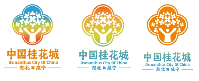 桂花标识图案独具匠心、将传统与现代相融合。图案内以古桂树为主要原型,借以人物举手欢迎的动态造型,外观呈现出以桂花花瓣为造型的视觉形象,彰显了咸宁地方文化产业与国际交流的文化特点,内外图案的组合既展现了咸宁地域文化的独特魅力,也寓意着咸宁城市日新月异的发展面貌。