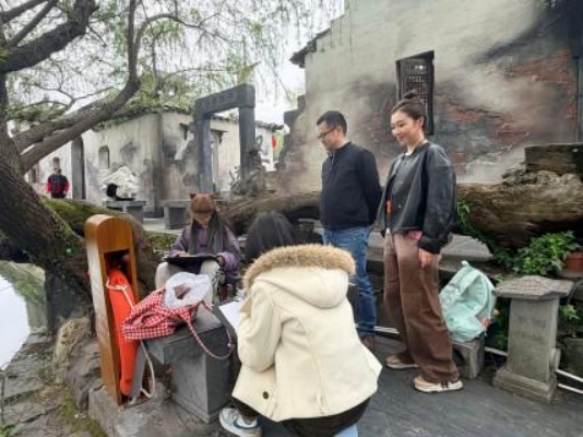 在安徽宏村,领导一行走访南湖、月沼等经典写生点位,观摩学生户外创作,听取课程安排、教学进度汇报,现场指导徽派建筑写生技法,与师生亲切交流创作思路。